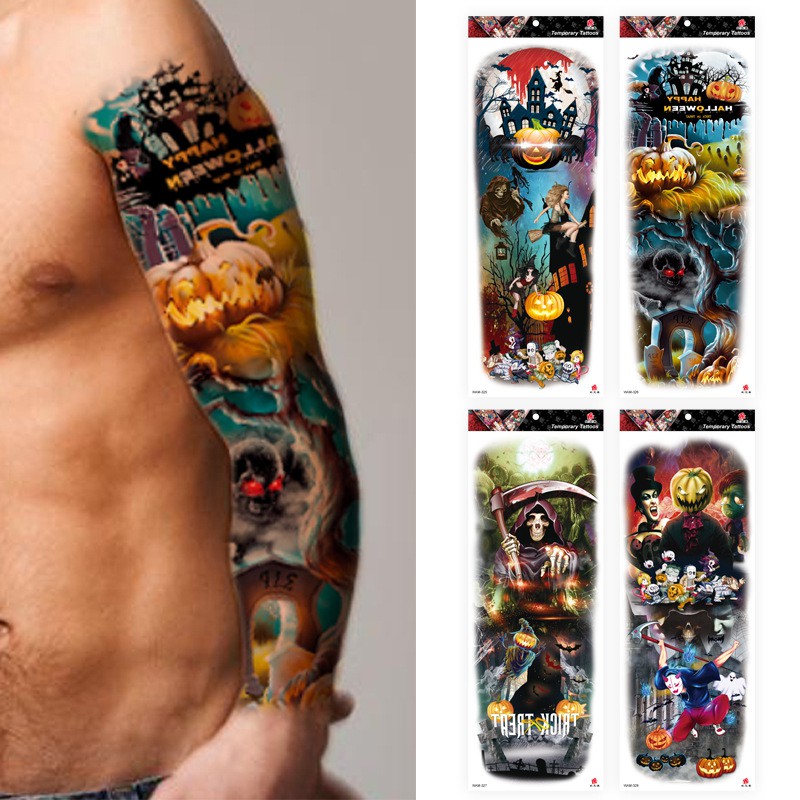 Halloween Waterproof Tattoo Stickers Whole Arm Temporary Body Art Large Temporary Tattoos Shopee Philippines