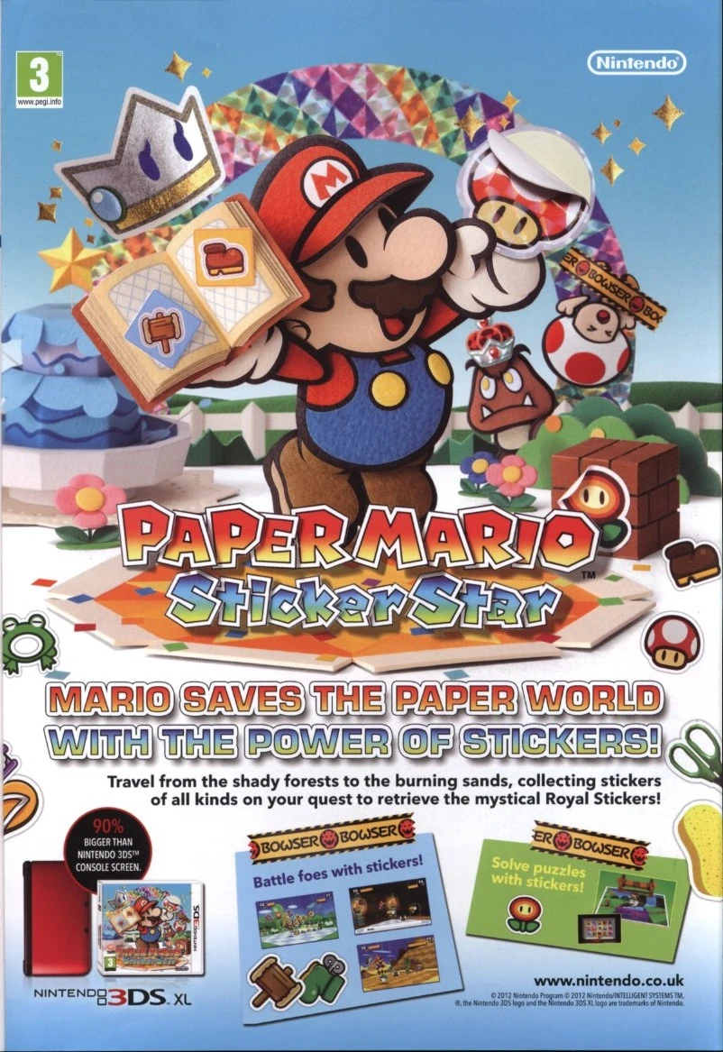 Advert Paper Mario Sticker Star Nintendo 3ds Mario Sticker Star Paper Mario Sticker Star Paper Mario