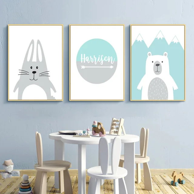 Custom Name Poster Cartoon Animal Baby Nursery Wall Art Canvas Painting Nordicprint Bear Rabbit Wall Pictures Kids Room Decor Painting Calligraphy Aliexpress