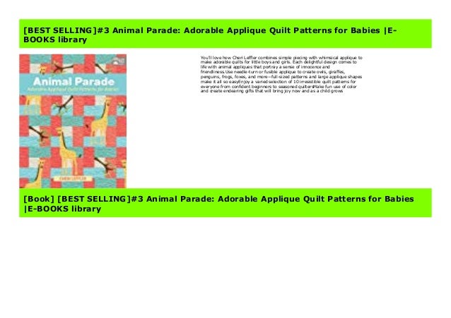 Animal Parade Adorable Applique Quilt Patterns For Babies Leffler Cheri 9781604682823 Amazon Com Books