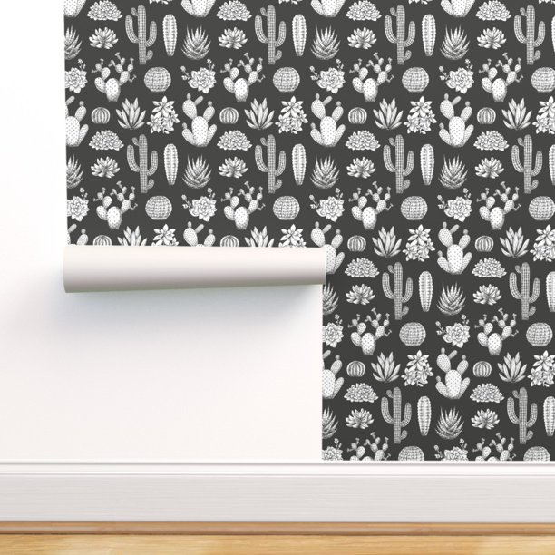 Peel And Stick Removable Wallpaper Cactus Modern White Cacti Style Black Trend Walmart Com Walmart Com