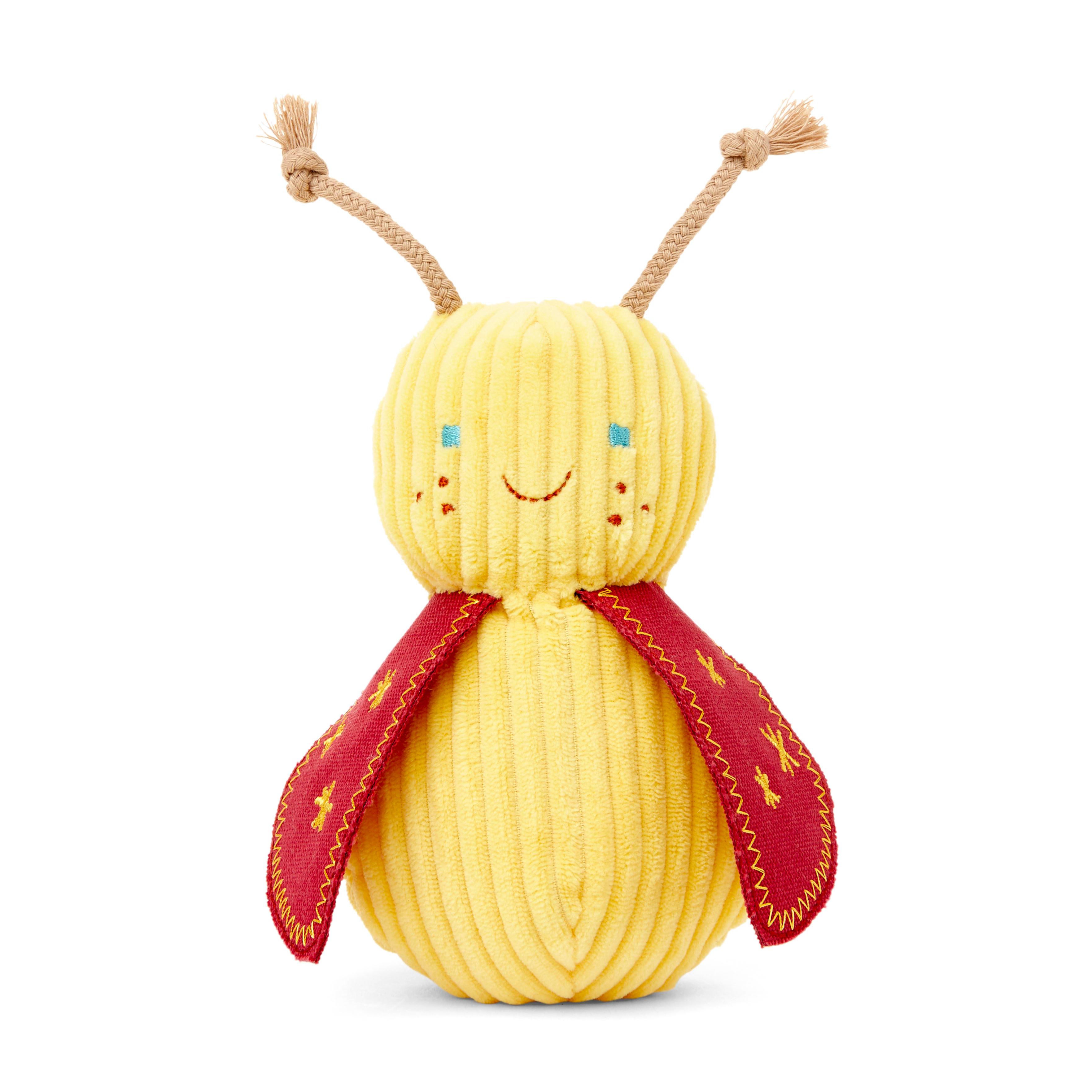 With gauzy wings perky antennae and a black bobble nose shes always in charge. Perfect for snuggling and coziness taking to bed or taking on-the-go as a just-your-size friend. Veteran owned and operated - support local business.