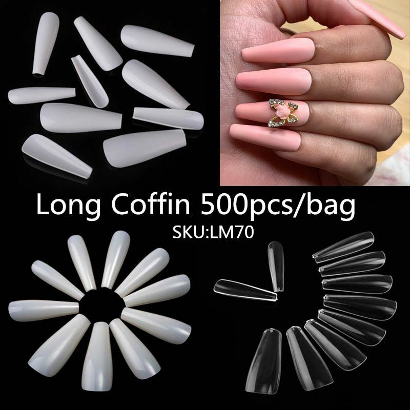 Amazon Com Acrylic Nail Art Kit 600pc Clear Long Coffin Nail Art Tips Ballerina Shaped Artificial Fingernails False Fake Nails Full Cover 10 Sizes Ab Rhinestone Beads And File Tools Beauty