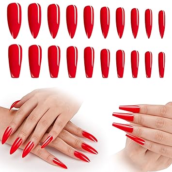 Amazon Com Red Press On Nails For Women 200pcs Cosics Glossy Red Nails Press Coffin Almond Shape Acrylic Nail Tips Long Full Cover Artificial False Fake Nails With Storage Box For Nail