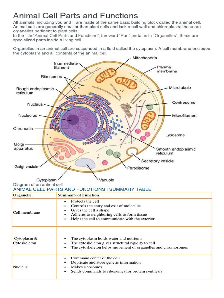 Cell Structure And Function Animal Cell Structure And Function Edu Resource Com